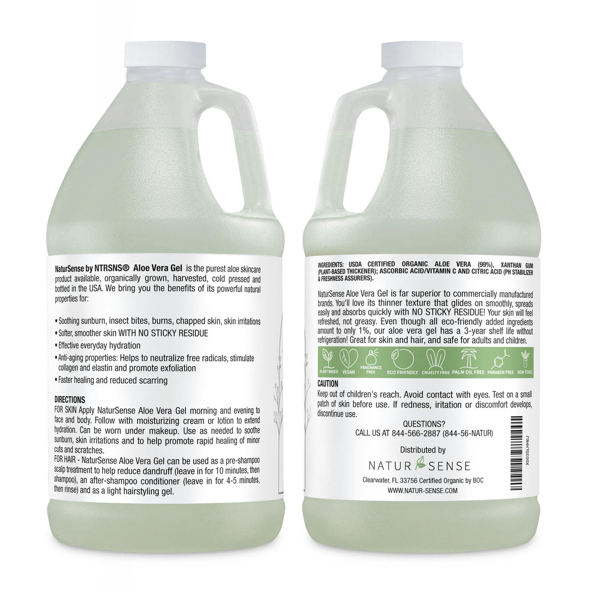 NTRSNS NaturSense Organic Aloe Vera Gel from 100% Pure Aloe. Great for Hair, Scalp, Face, Dry Skin, Acne, Sunburn, Sensitive Skin. Unscented, USDA Certified, 64 oz.