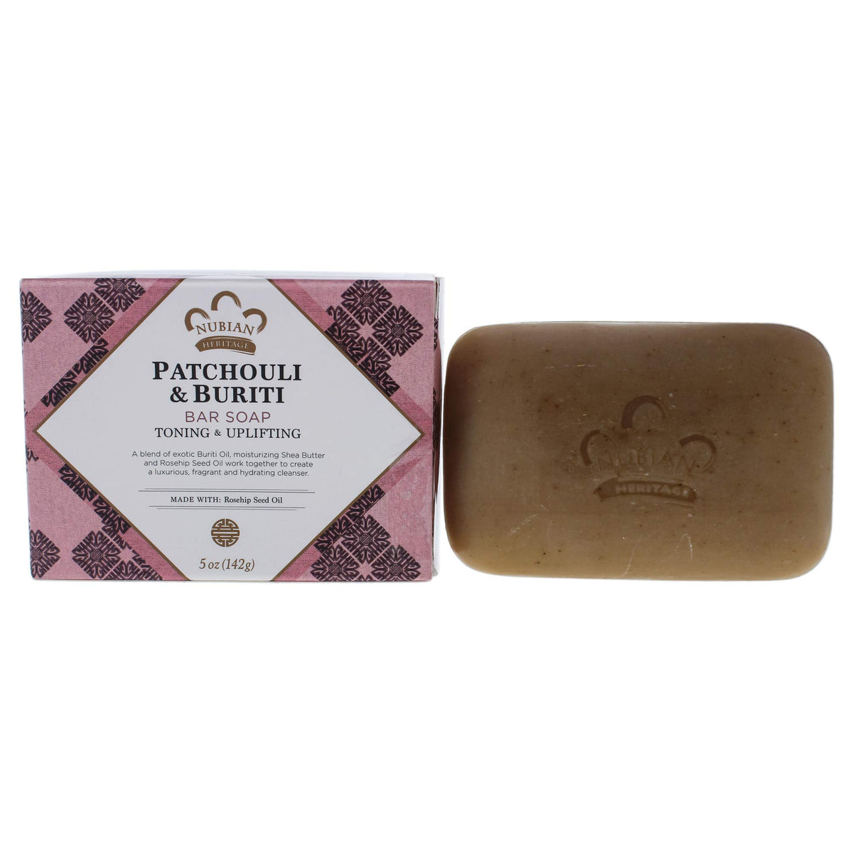 Nubian Heritage Bar Soap with Shea Butter and Rose Hip - Patchouli and Buriti - 5 oz - Gluten Free - Fragrant, soothing and hydrating cleanser by Nubian Heritage