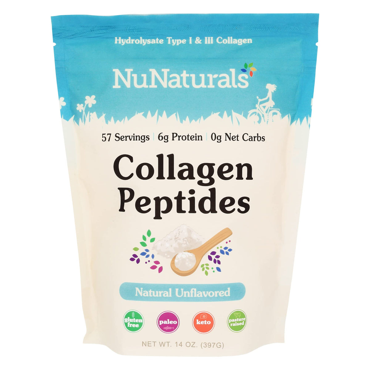 NuNaturals Collagen Peptides Powder (Type I, III), for Skin, Hair, Nail, and Joint Health, 14 oz