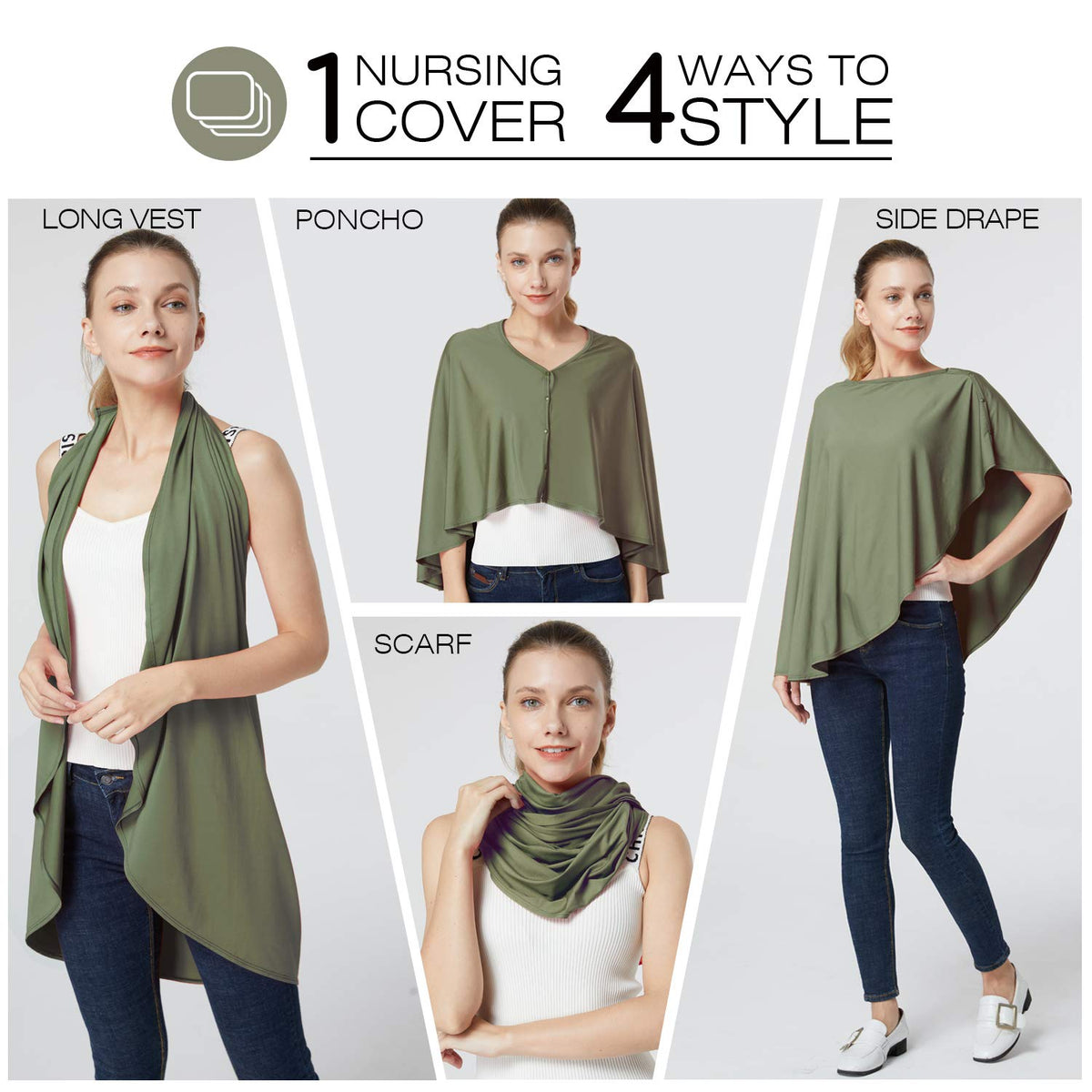 Nursing Cover & Baby Nursing Poncho,Multi Use Breastfeeding Cover for CarSeat Canopy, High Seat Cover, Stroller Cover, Shopping Cart Cover,Nursing Scarf for Boy and Girl by Kefee Kol (Green)