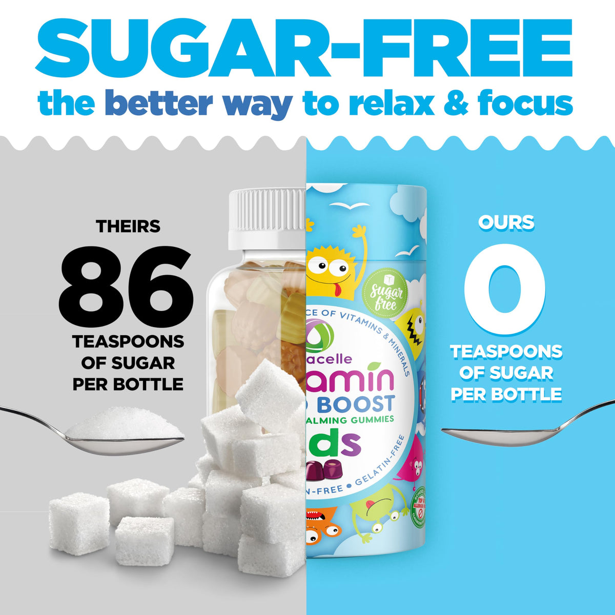 NUTRAMIN Kids Mood Boost Vegam Vitamin Gummy: Calming Magnesium Citrate Supplement for Children with Ashwagandha & Vitamin B Complex to Relax & Focus - Sugar-Free, Allergy-Safe, Non-GMO 90 ct