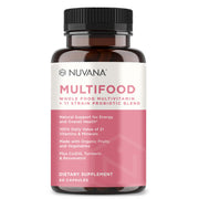 Nuvana Multifood Whole Food Multivitamin is a premium blend of 21 organic fruits and vegetables that boost energy levels, support gut health, and enhance immune function. These capsules contain prebiotics and probiotics for overall well-being.