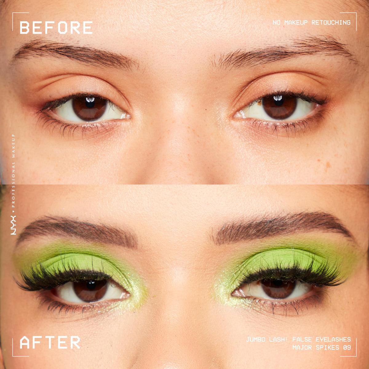 NYX PROFESSIONAL MAKEUP Jumbo Lash! False Eyelashes offer vegan lashes with up to 12HR wear. These reusable false lashes in Major Spikes design provide a dramatic eye look that lasts all day.