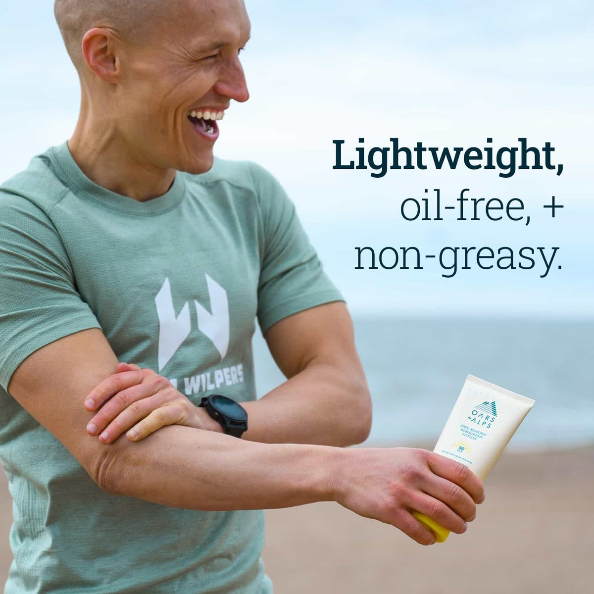 Protect your skin with Oars + Alps 100% Mineral Sunscreen for Face & Body Lotion, a SPF 30 sunscreen infused with Hyaluronic Acid, Shea Butter, and Coconut Oil. This water and sweat-resistant sunscreen is suitable for all skin types, providing effective sun protection.