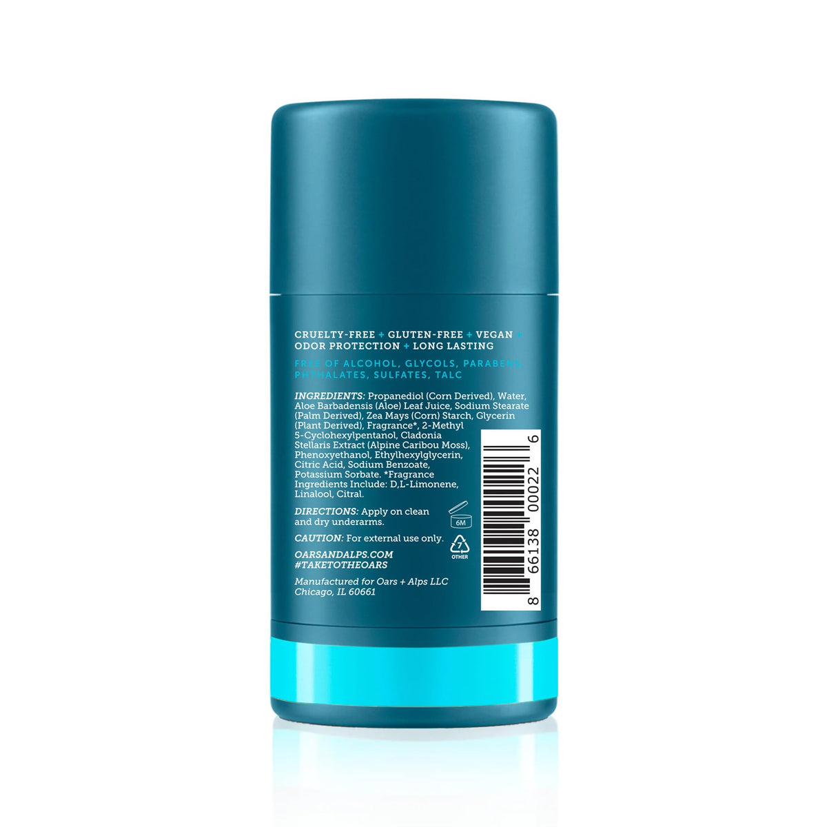 Oars + Alps Natural Deodorant in Fresh Ocean Splash is an aluminum-free and alcohol-free deodorant that offers long-lasting freshness for both men and women, suitable for vegan and gluten-free lifestyles.