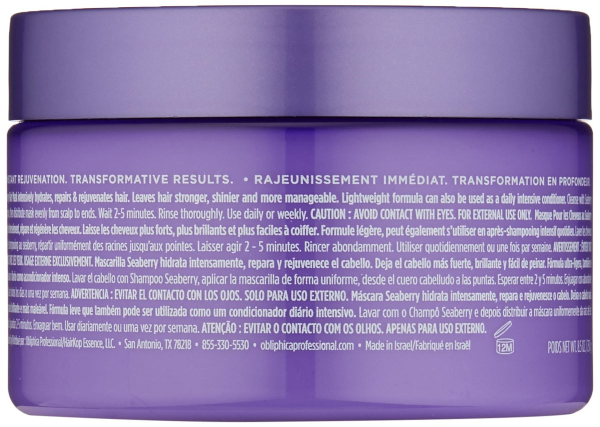 Obliphica Seaberry Hair Mask is a deep conditioning hydrating treatment specially formulated for dry and damaged hair. This moisturizing hair repair and growth mask is ideal for medium, coarse, and color-treated hair, providing intense nourishment and revitalization.