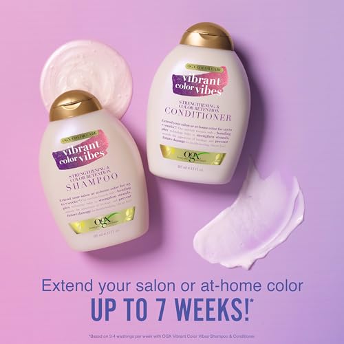 Enhance your color-treated hair with OGX Vibrant Color Vibes Conditioner. This 13 fl oz bottle helps maintain vibrant hair color and nourishes your locks.