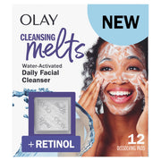Discover a deep-clean experience with Olay Cleansing Melts + Retinol. Includes 12 water-activated face wash pads for a spa-like feeling with every use.