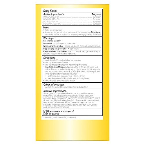 Directions :: Apply liberally 15 minutes before sun exposure. Reapply at least every 2 hours. Use water resistant sunscreen if swimming or sweating. Sun Protection Measures: Spending time in the sun increases your risk of skin cancer and early skin aging. To decrease this risk, regularly use a sunscreen with a Broad Spectrum SPF value of 15 or higher and other sun protection measures including: Limit time in sun, especially from 10 a.m. – 2 p.m. Wear long-sleeved shirts, pants, hats, and sunglasses. Children under 6 months: ask a doctor.