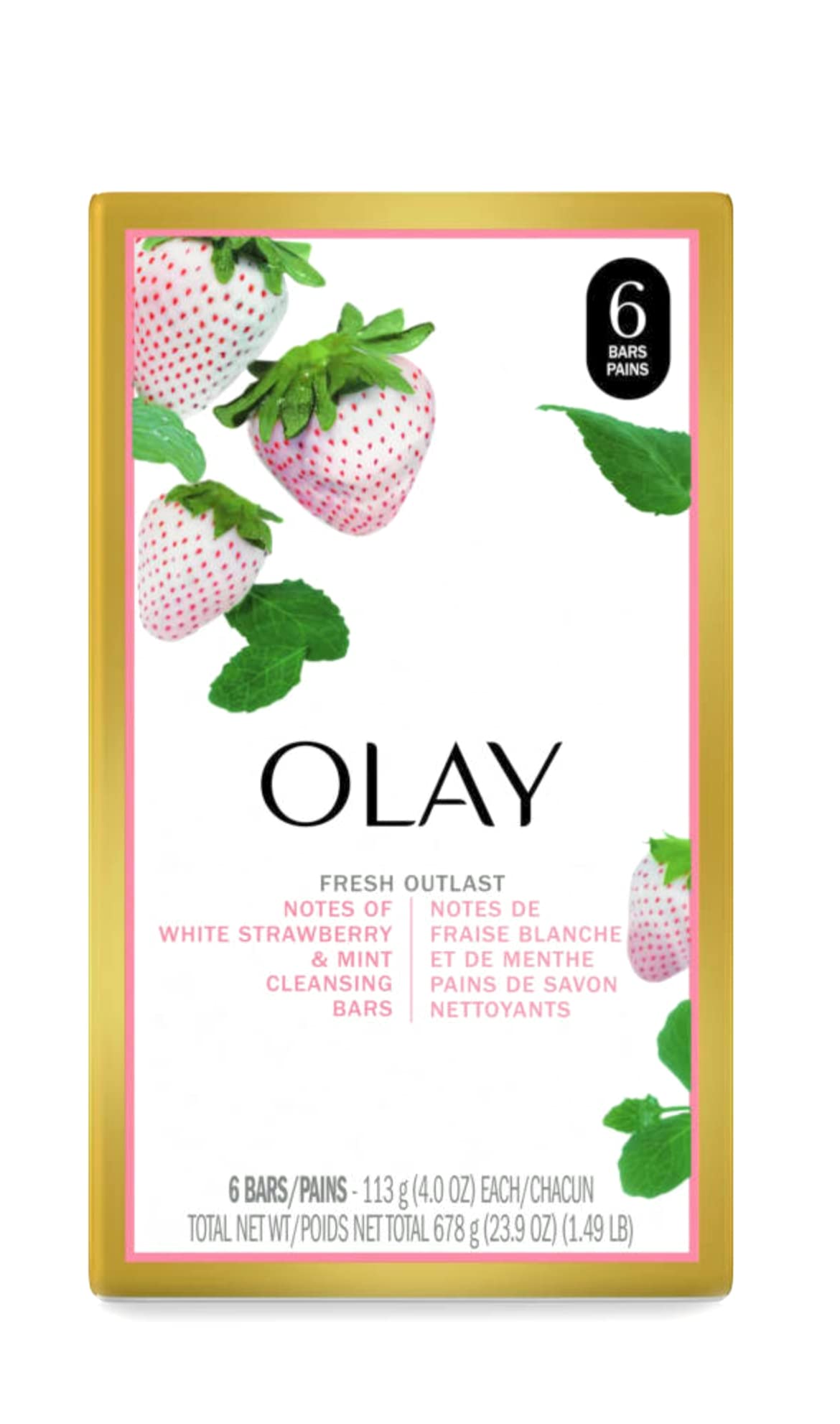 Olay Fresh Outlast Beauty Bar, Cooling White Strawberry and Mint, 6 Soap Bars