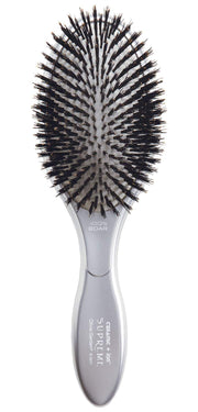 Olivia Garden Ceramic + Ion Supreme Paddle Hair Brush with 100% boar bristles is designed for supreme hair care. It gently detangles, smooths, and adds shine to all hair types, providing a luxurious styling experience.