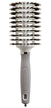 Style your hair with precision using Olivia Garden Ceramic + Ion Turbo Vent Combo Hair Brush, featuring ionic and 100% boar bristles in a Grande 3 1/4" size. This professional-grade brush offers superior styling control and ion-infused technology for a smooth finish.