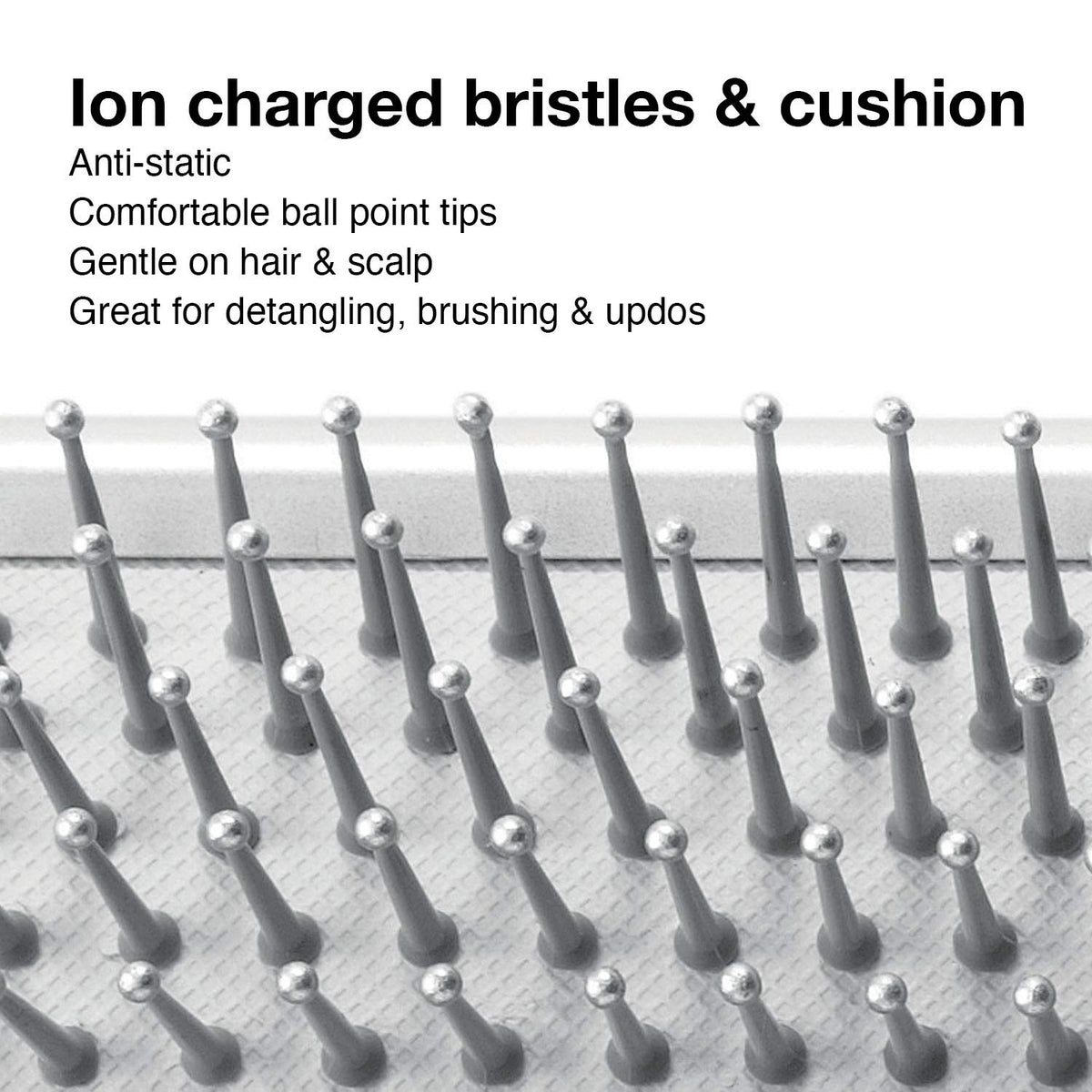 Short Product Description :: For detangling, styling, brushing and updos, this brush is a go-to for all hair types and lengths. Cushion is comfortable on hair and scalp