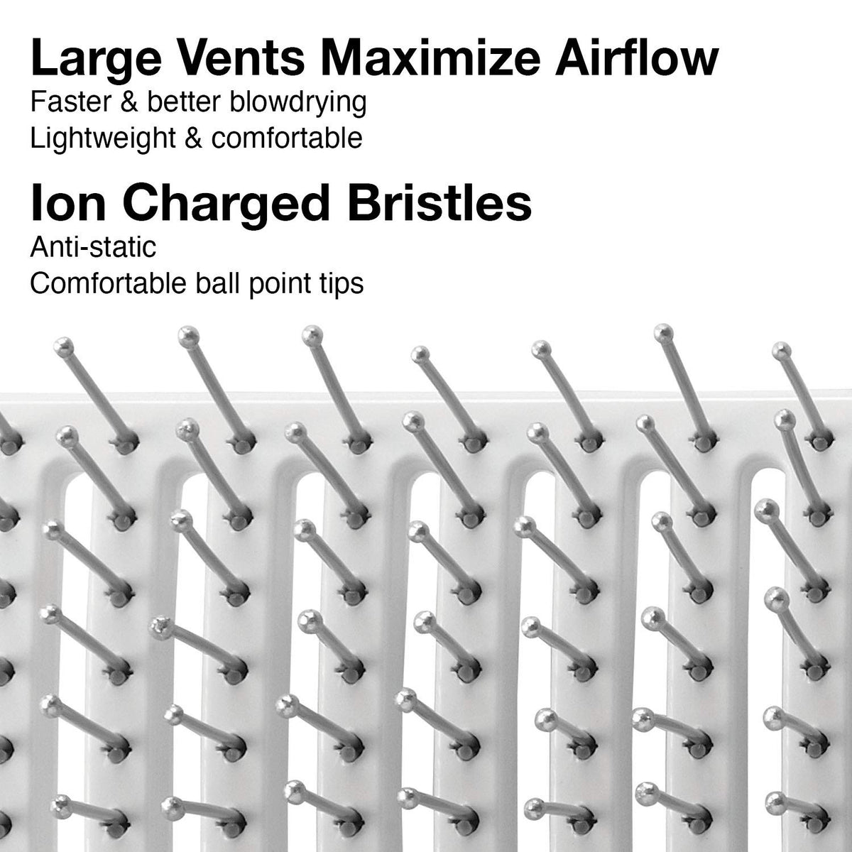 Short Product Description :: For detangling, styling, brushing and updos, this brush is a go-to for all hair types and lengths. Vent allow for total airflow when used with a dryer
