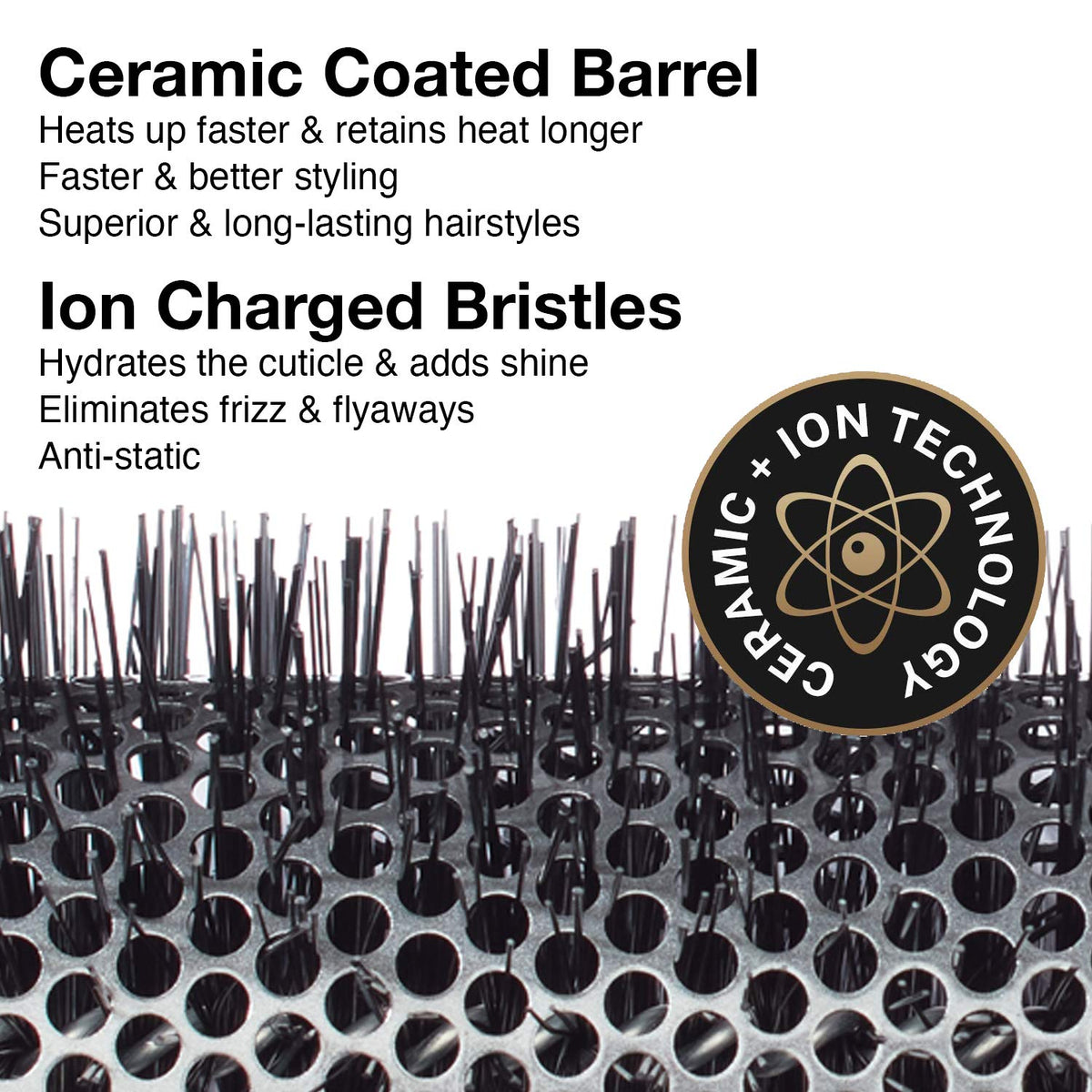 Short Product Description :: Round thermal brush with ceramic coated barrel and ionic technology, ergonomic handle for comfortable, easy rotation and retractable sectioning pick for easy sectioning