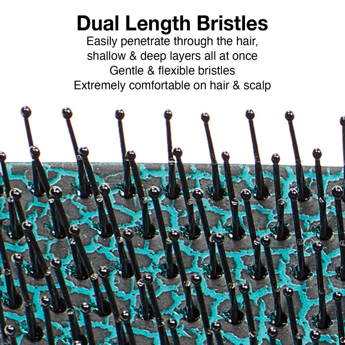 Product Benefit :: Dual Length Bristles Easily penetrate through hair, shallow & deep layers all at once. Gentle & flexible bristles.