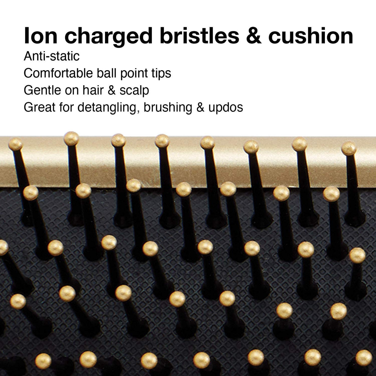 Product Benefit :: Ceramic & Ionic Technologies, Ergonomic Snag-free handle, sectioning pick. Soft & gentle cushion & bristles