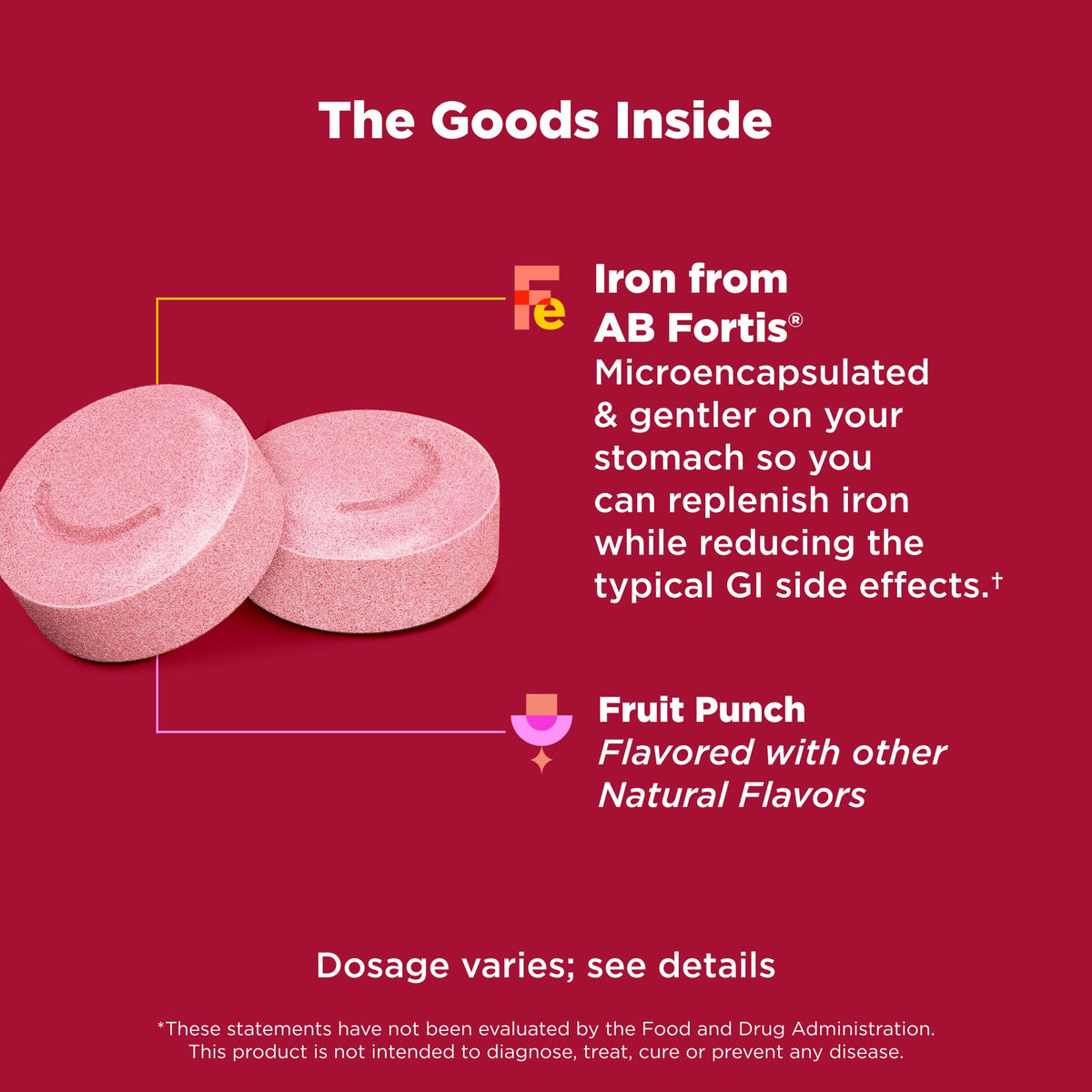 OLLY Delightful Iron Chewable Tablet, Iron Supplement from AB Fortis, Fruit Punch Flavor, 30 or 20 Day Supply - 60 Count