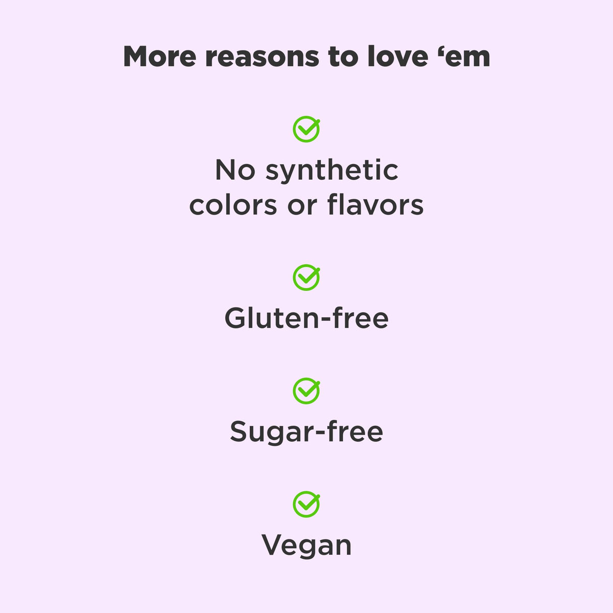 Other Ingredients: Maltitol, Water, Xylitol, Erythritol, Pectin, Citric Acid, Natural Flavor, Sodium Citrate, Coloring (from Carrot and Blueberry Juices), Vegetable Oil (Coconut), and Carnauba Wax.