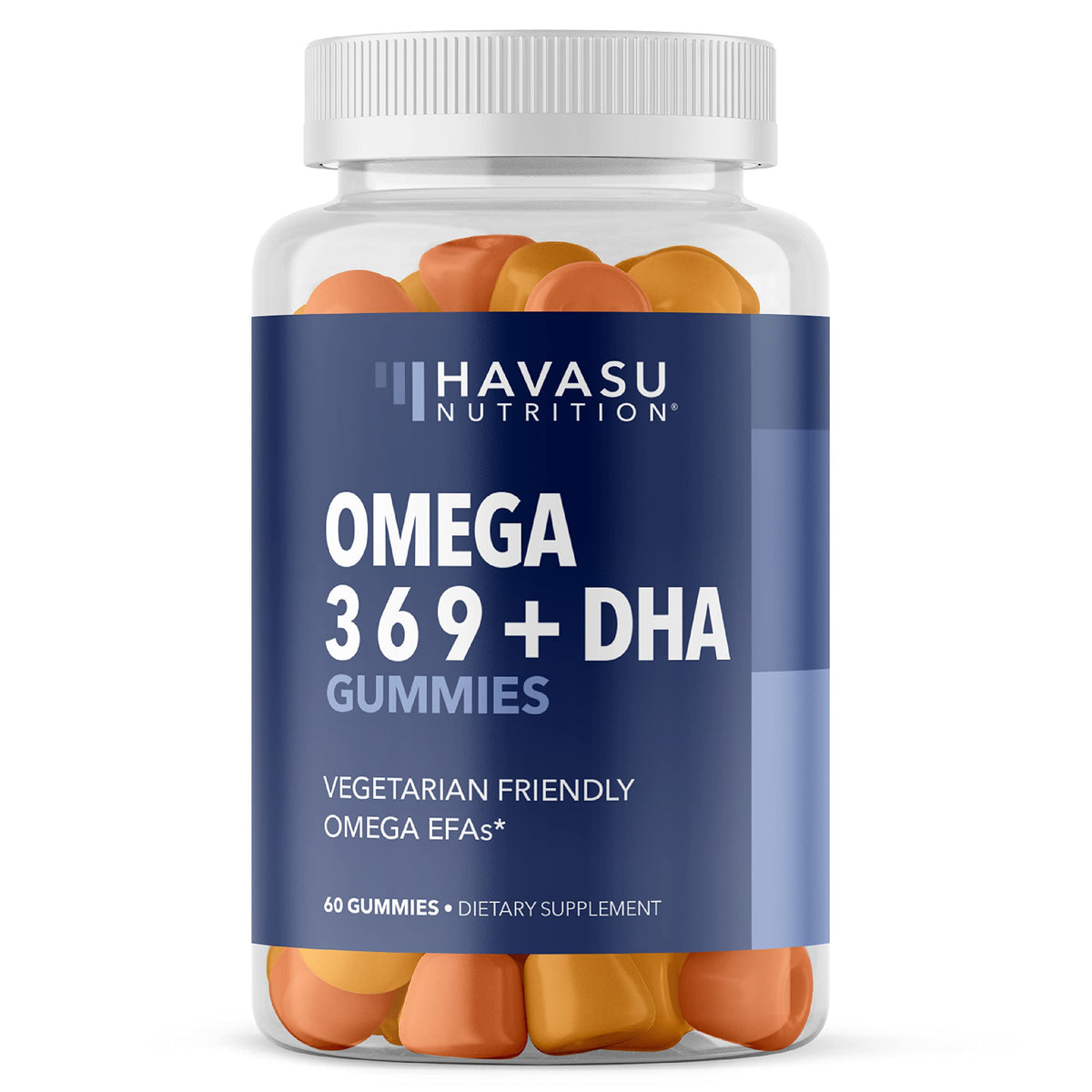 Omega 3 6 9 + DHA Gummies for Adults provide plant-based fish oil alternative with Chia Seed Oil and Algae. These lemon and orange flavored gummies support brain and immune function.