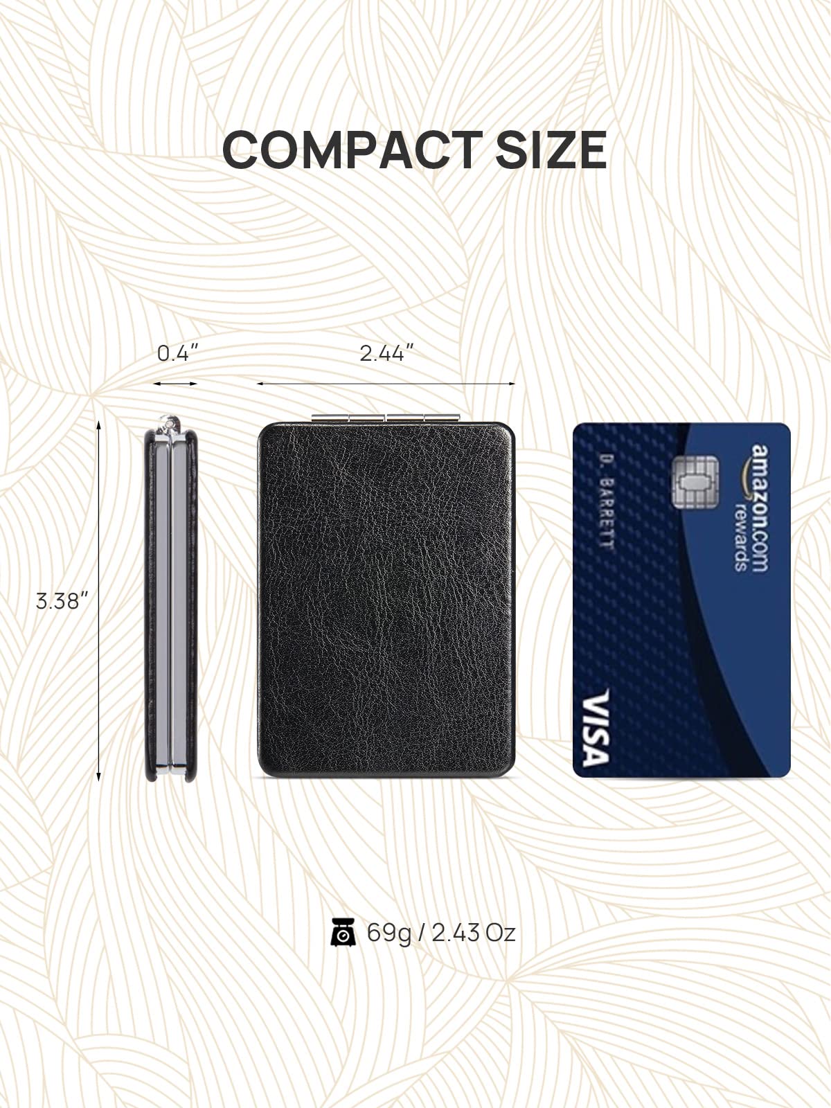 OMIRO Compact Mirror, Classical PU Leather 1X/3X Magnification, Pocket Ultra Portable for Purses and Travel (Black)