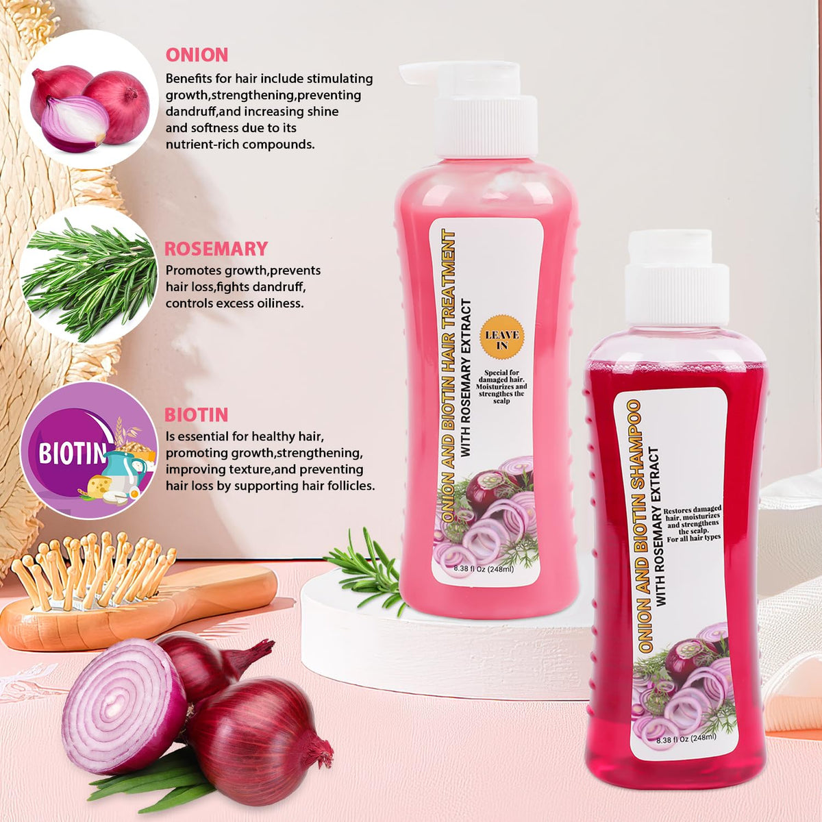 Onion, Biotin and Rosemary Shampoo and Treatment Set - Silicone Free, for Hair Loss, Thinning and All Hair Types