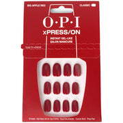 Enhance your nails with OPI xPRESS/ON Big Apple Red. These classic red short round press-on nails come with nail glue for easy application. Long-lasting, reusable, and non-damaging, they provide a quick and stylish nail solution.