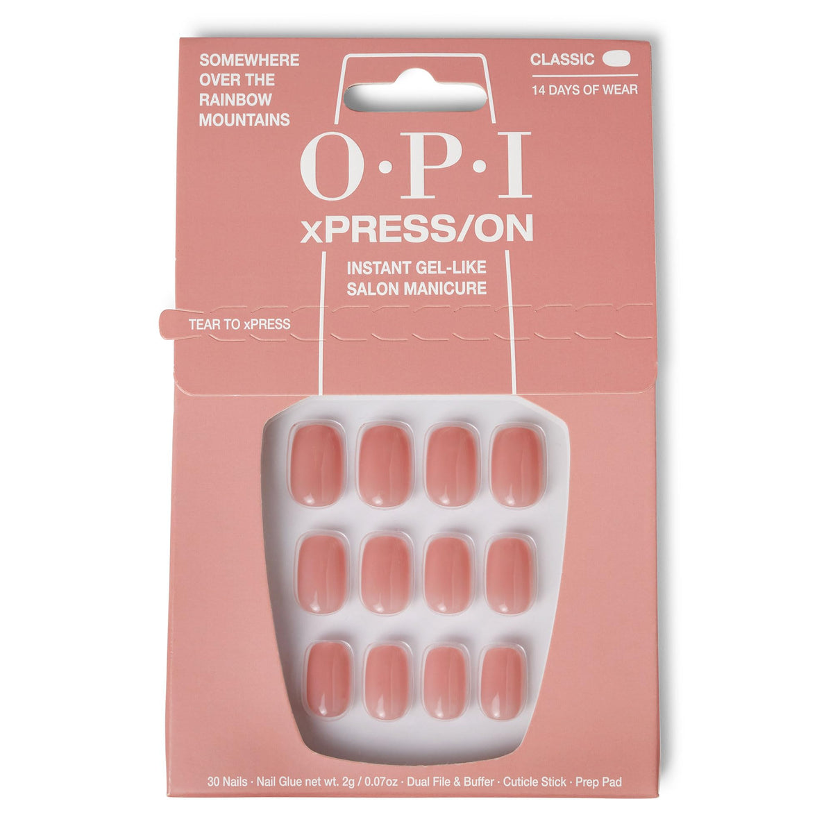 OPI xPRESS/ON Somewhere Over the Rainbow Mountains | Nude Short Round Press On Nails | With Nail Glue | Spring Collection