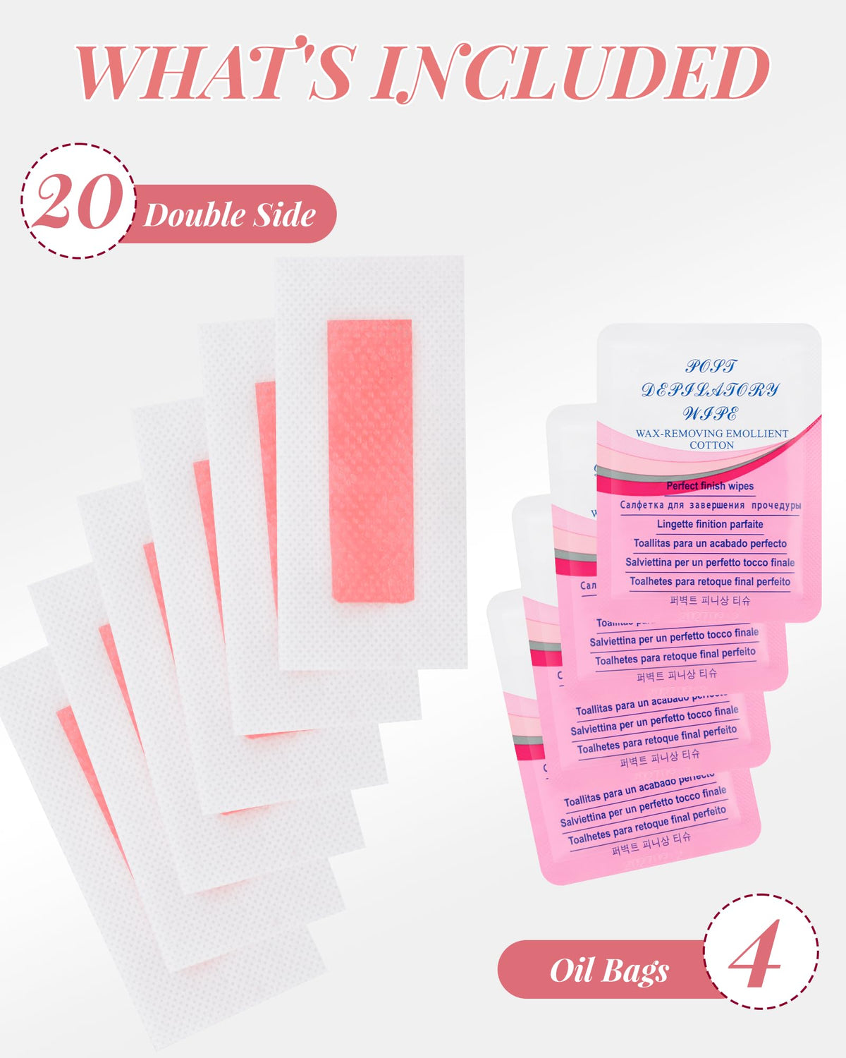 OPOX 40PCS Facial Wax Strips for Hair Removal, Facial Hair Removal for Women, Waxing Kit for Women's Face, Bikini, Chest, Body, Arms, Legs, Back, & Brazilian | 40ct Waxing Strips & 4 calming Oil Wipes