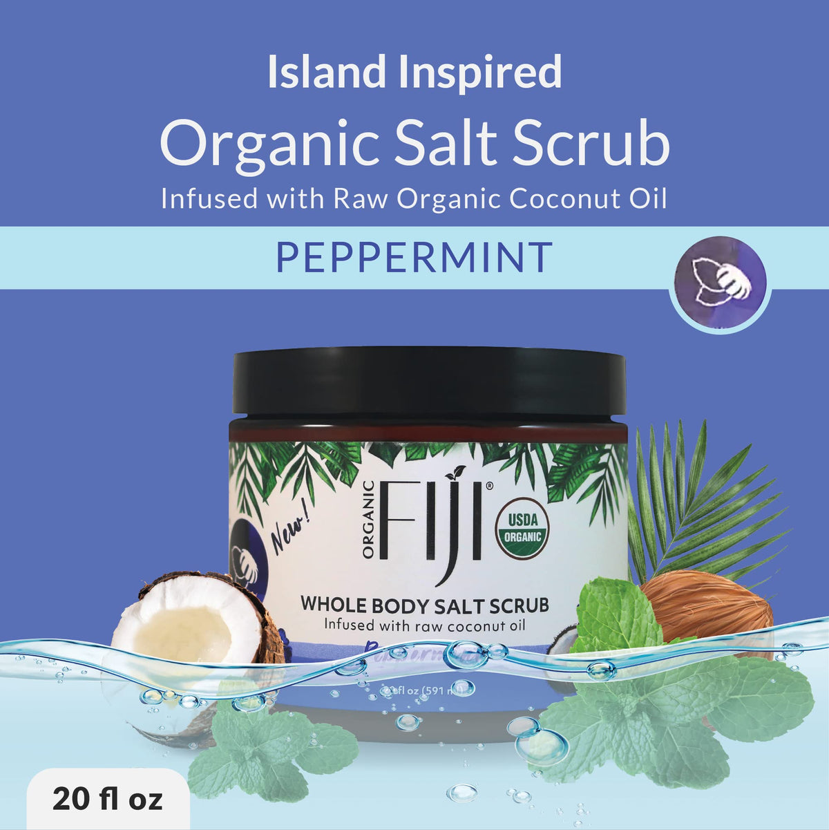 Organic Fiji Whole Body Scrub is infused with Coconut Oil and exfoliating Sea salt to provide a luxurious exfoliating experience. This 20 oz. scrub helps restore your skin's natural biosphere, leaving it smooth and soft with a Peppermint fragrance.