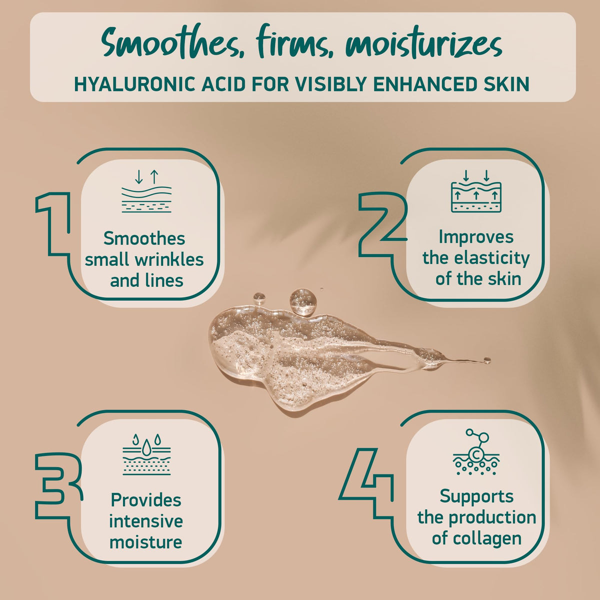 Rejuvenate your skin with Organic Hyaluronic Acid Serum for Face. This highly dosed serum combines 4 different hyaluronic sizes for intense hydration. Made in Germany, this fragrance-free serum is a must-have in your anti-aging skincare routine.