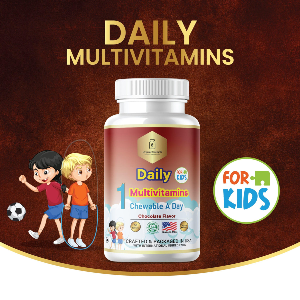 Organic Strength Kids 1 Chewable A Day Halal Multivitamins for Age 4-12, 60 Servings