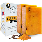 Organic Turmeric Soap for Dark Spots & Acne with Clove Bud is a face and body bar that offers a rich, creamy lather for natural skin glow and aromatherapy benefits. This 2-pack soap is designed to address dark spots and acne issues.