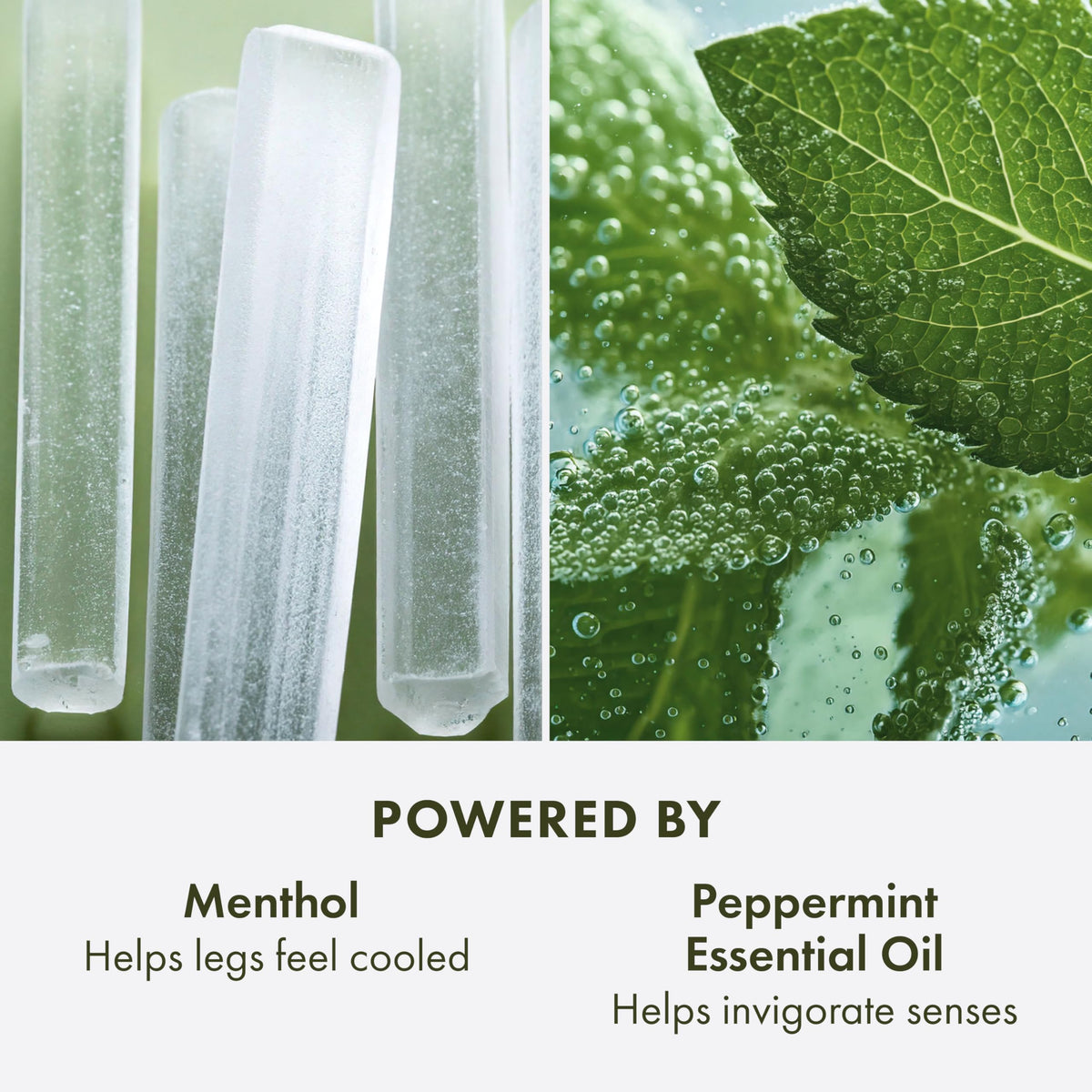 Revitalizes tired legs with Menthol and Peppermint