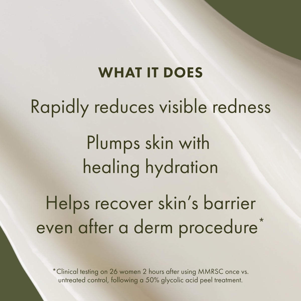 Short Product Description :: A concentrated serum with Hyaluronic Acid and Reishi Mushroom that helps rapidly soothe visible redness and recover skin's barrier—including after a derm procedure.*