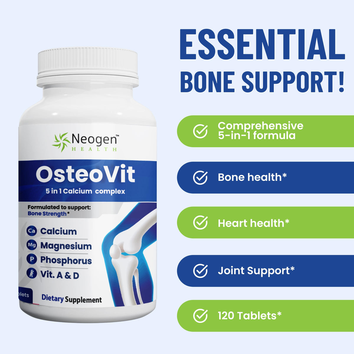 OsteoVit 5-in-1 Calcium 120 tabs Multivitamin: Calcium, Magnesium, Phosphorus, Vitamin D3 & A - Bone Strength & Flexibility*, Non-GMO Gluten Free | Calcium Supplement for Women & Men with Vitamin D