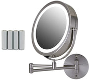 OVENTE 9 Lighted Wall Mount Makeup Mirror with 1X/7X Magnification, Cordless Double Sided Magnifying Round Vanity Mirror, 360° Swivel Design, Extendable and Folding Arm, Nickel Brushed MFW85BR1X7X
