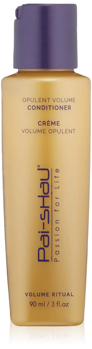 Pai-Shau Opulent Volume Conditioner is a luxurious hair care product in a 3 Fl oz bottle. It provides volume and body to the hair while maintaining hydration and shine for a healthy-looking mane.