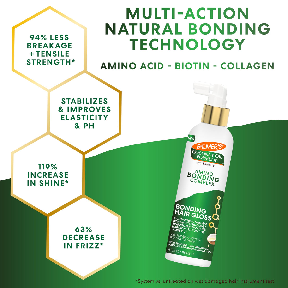 Palmer's Amino Bonding Complex Hair Gloss, Hair Shine Spray with Coconut Oil & Vitamin E, Hydrating, Heat Protectant, Anti Frizz, Adds Shine & Protects Hair Growth, All Hair Types, 4 fl. oz