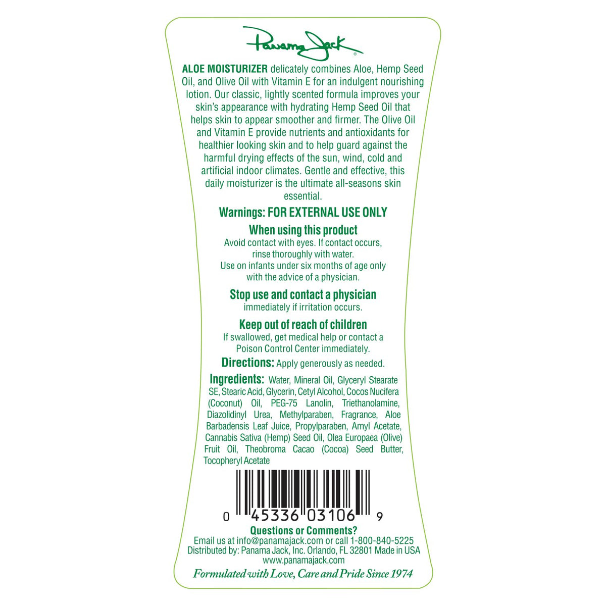 Nourish your skin after sun exposure with Panama Jack Aloe Moisturizer Lotion. This daily skincare essential contains olive and hemp seed oils with vitamin E to hydrate and soothe your skin, leaving it soft and supple.