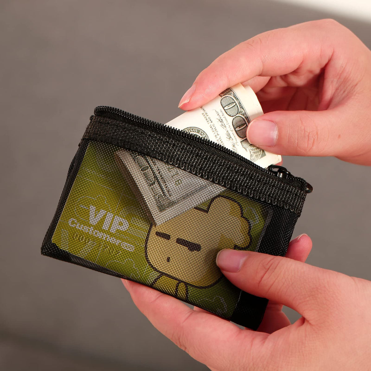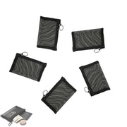 Patu Mini Zipper Mesh Bags, 3 x 4, Size XS / A8, 5 Pieces, Keychain Pouch Key Holder, Coin Purse, Clear Travel Kit Small Item Cosmetic Organizer, Black
