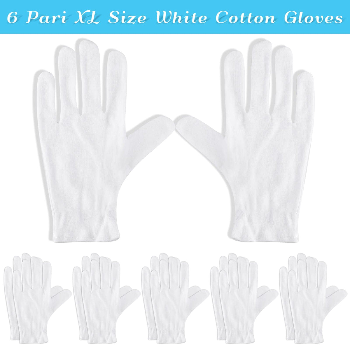 Paxcoo 6 Pairs XL White Cotton Gloves for Dry Hand Moisturizing Cosmetic Eczema Hand Spa and Jewelry Inspection