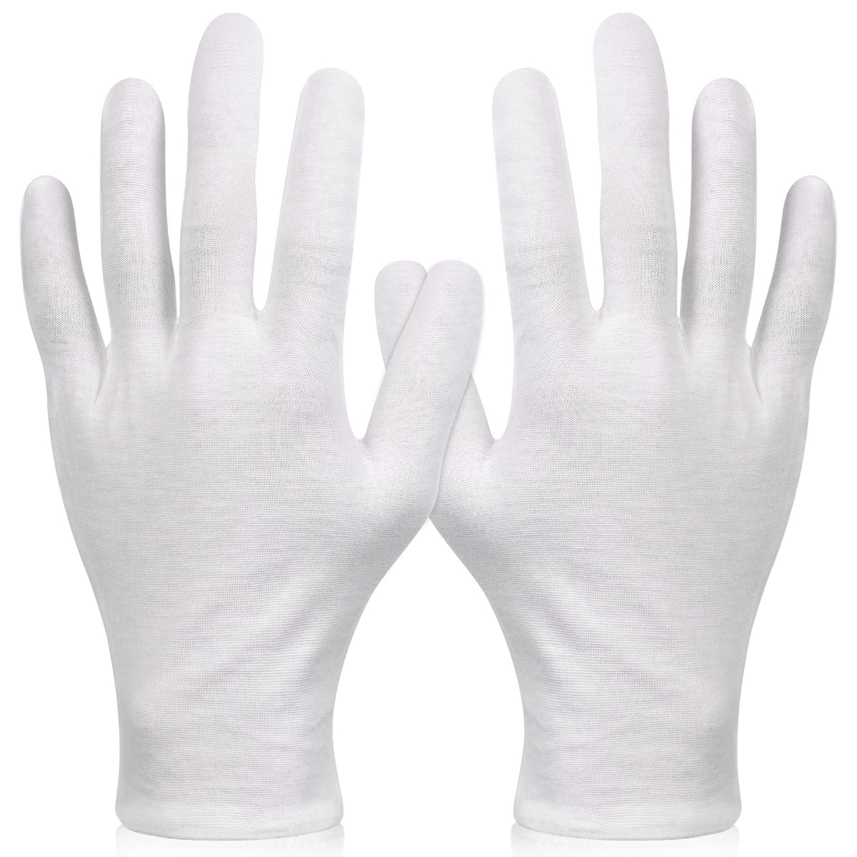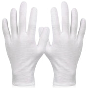 Paxcoo White Cotton Gloves are designed for dry hand moisturizing, cosmetic applications, eczema treatment, hand spa, and jewelry inspection. These XL gloves provide a comfortable fit for various uses.