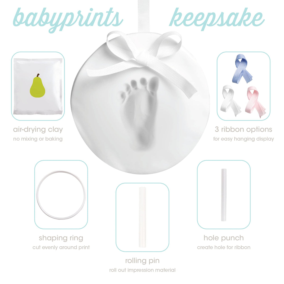 Pearhead Baby Handprint or Footprint Kit, My First Christmas Ornament, DIY Clay Keepsake Kit, Gift For New And Expecting Parents, 3 Multicolored Ribbons For Baby Girl or Baby Boy
