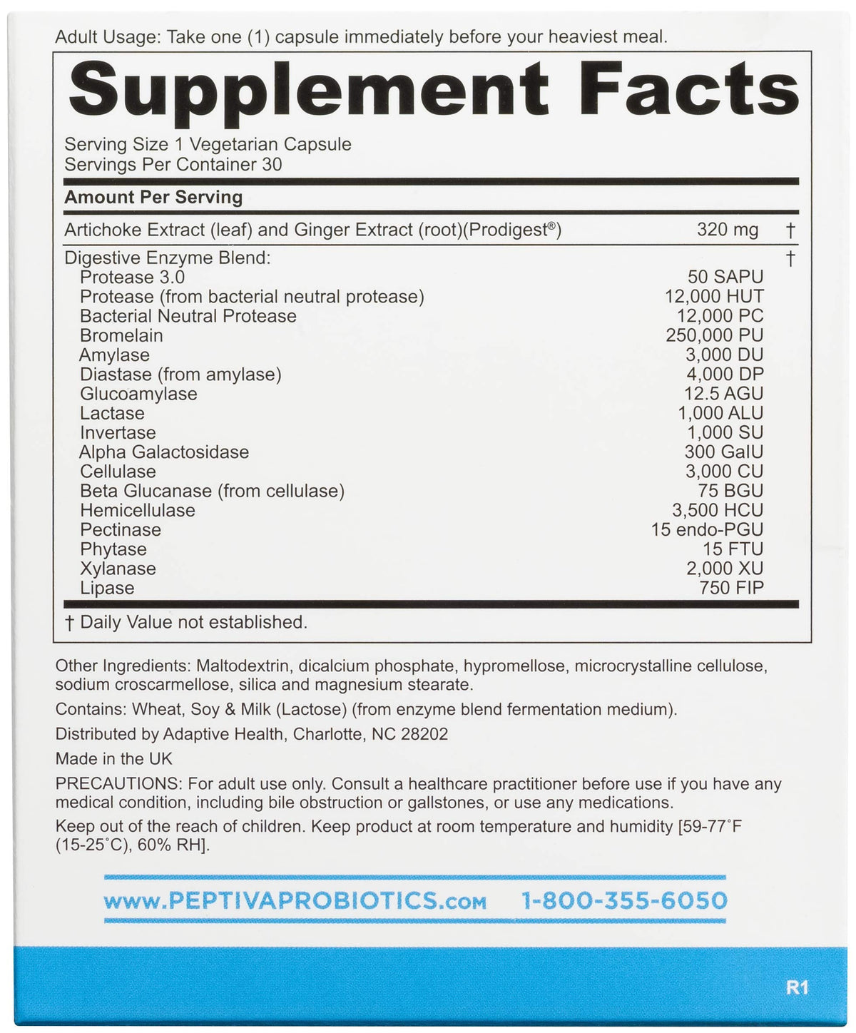 Ingredients :: Artichoke Extract (leaf) and Ginger Extract (root)(Prodigest), Protease 3.0, Protease (from bacterial neutral protease), Bacterial Neutral Protease, Bromelain, Amylase, Diastase (from amylase), Glucomylase, Lactase, Invertase, Alpha Galactosidase, Cellulase, Beta Glucanase (from cellulase), Hemicellulase, Prectinase, Phytase, Xylanase, Lipase, Maltodextrin, Dicalcium Phosphate, Hypromellose, Microcrystalline Cellulose, Sodium Croscarmellose, Silica and Magnesium Stearate