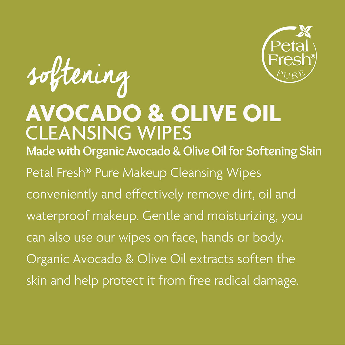Petal Fresh Softening & Protecting Avocado & Olive Oil Makeup Removing, Cleansing Towelettes, Gentle Face Wipes, Daily Cleansing, Vegan and Cruelty Free, 60 count