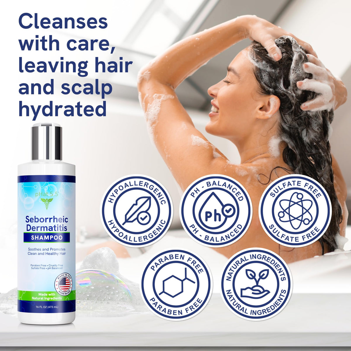 Soothe your dry and itchy scalp with pHat 5.5 Sulfate-Free and Fragrance-Free Shampoo. This anti-dandruff shampoo is safe for seborrheic dermatitis, providing relief and balance to your scalp. Experience the comfort of a healthy scalp with every wash.