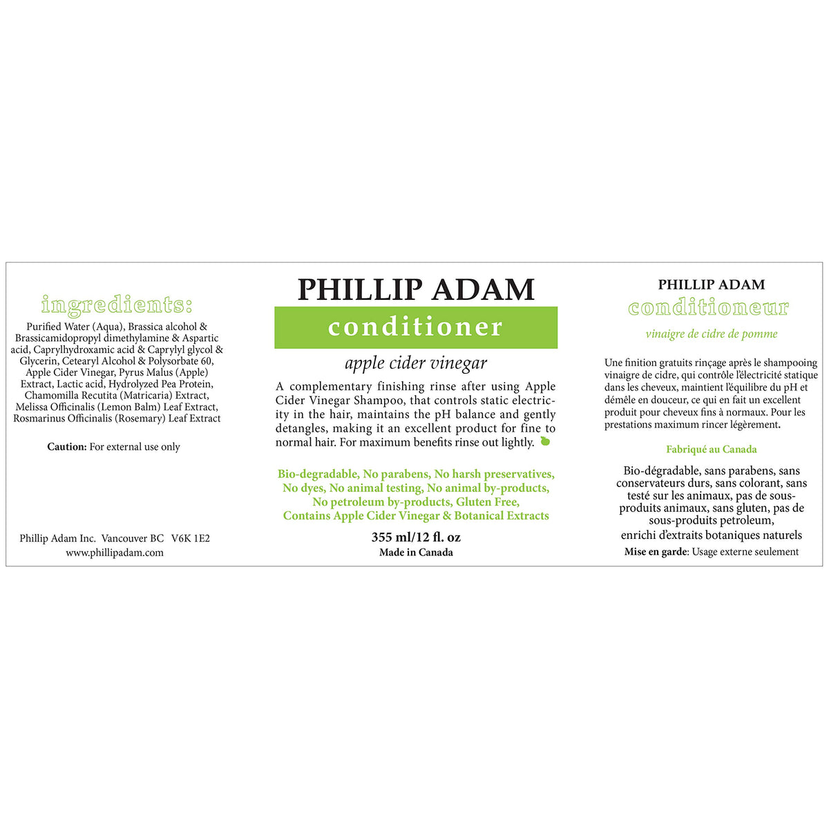 Phillip Adam Apple Cider Vinegar Shampoo and Conditioner Set for All Types of Hair - Sulfate Free - pH Balancing - 12 Ounce Each