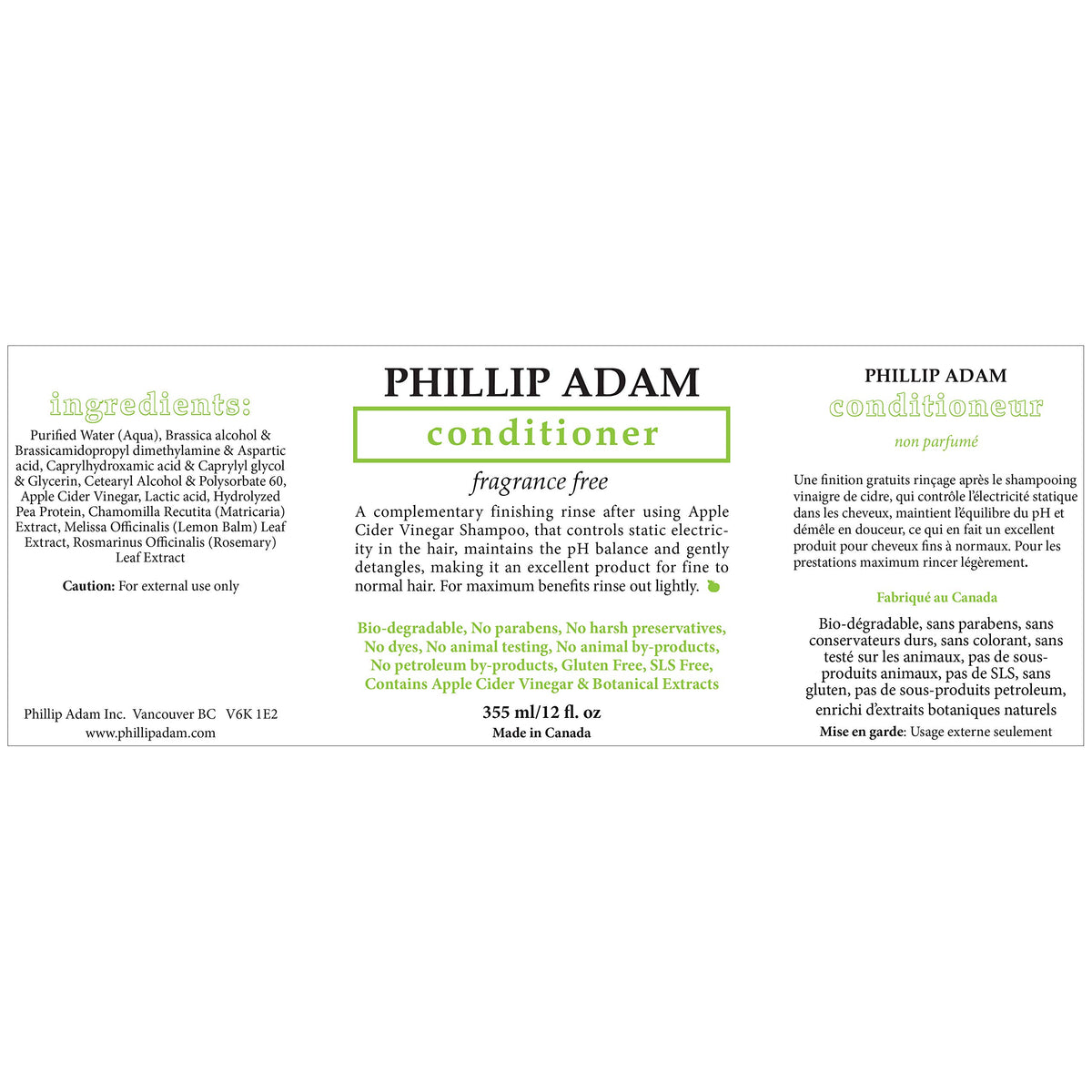 Phillip Adam Fragrance Free Shampoo and Conditioner Set with Apple Cider Vinegar - pH Balancing - Enhance Shine and Smoothness- 12 Ounce Each
