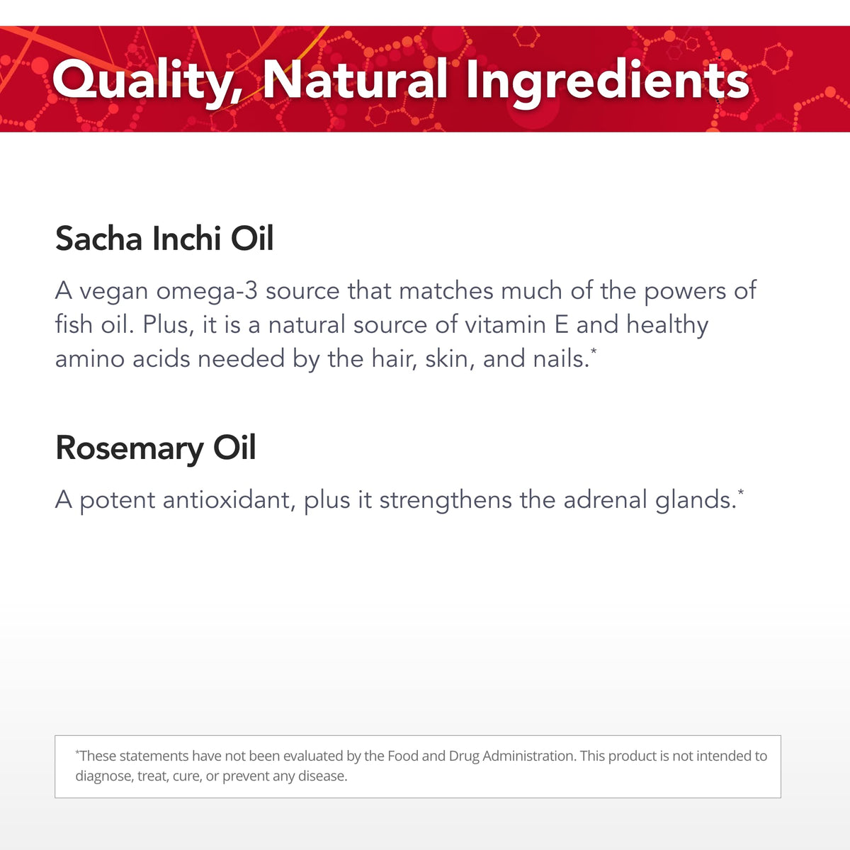 Ingredients: Wild Sacha inchi oil, wild rosemary oil